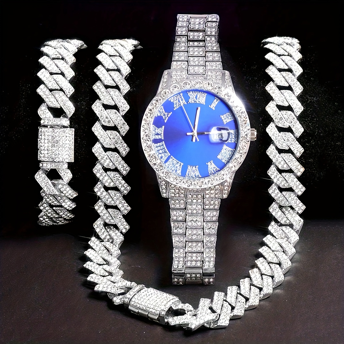 POR QUE O 3 PEÇAS COLAR + PULSEIRA + RELÓGIO DE CORRENTE CUBANA É PERFEITO PARA VOCÊ:
